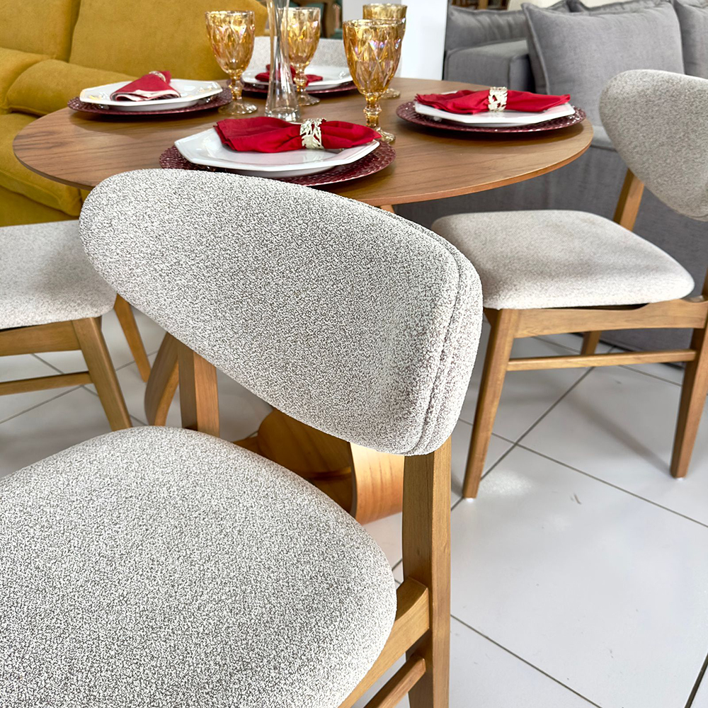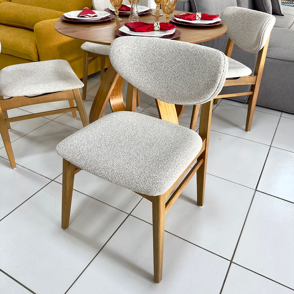 revestimento em linhão; estrutura 100% madeiras maciça com encosto levemente ergonômico