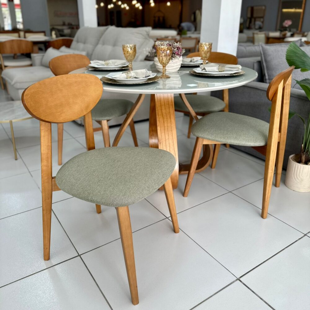 Acompanha 4 cadeiras em madeira – com revestimento do linhão
