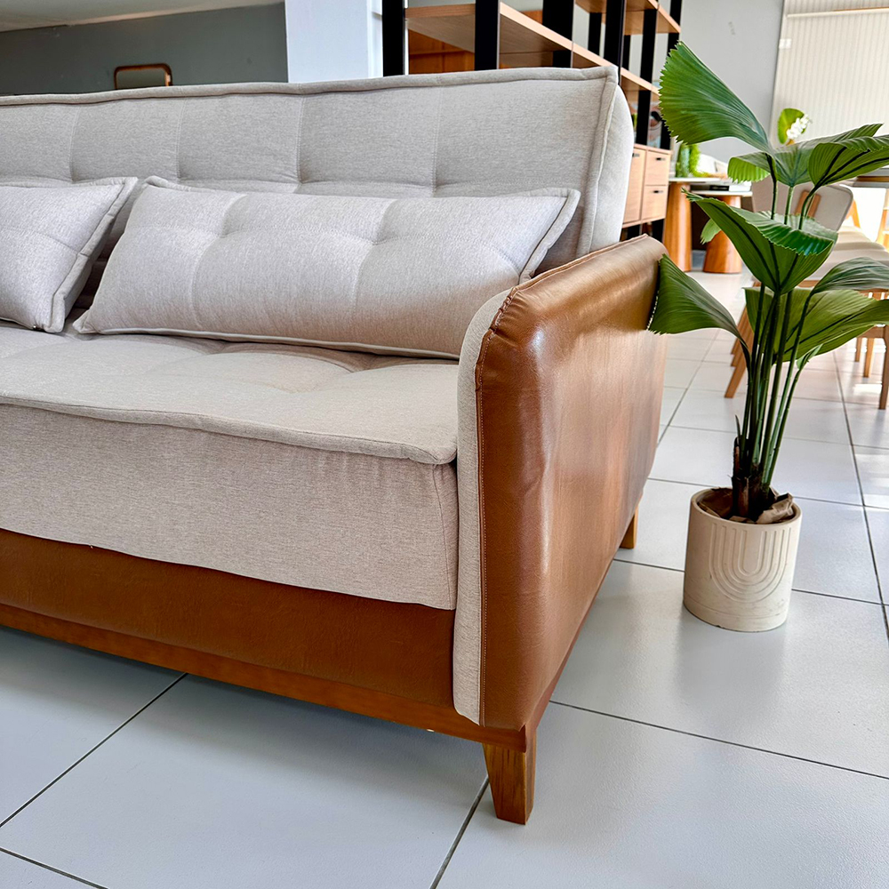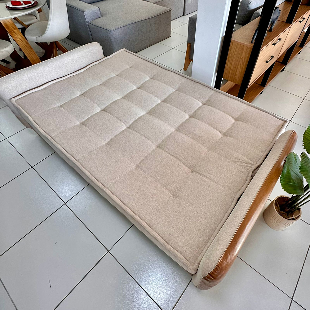sofá cama que tem um espaço interno que acomoda duas pessoas tranquilamente, muito conforto e qualidade pra ambientes como fletes